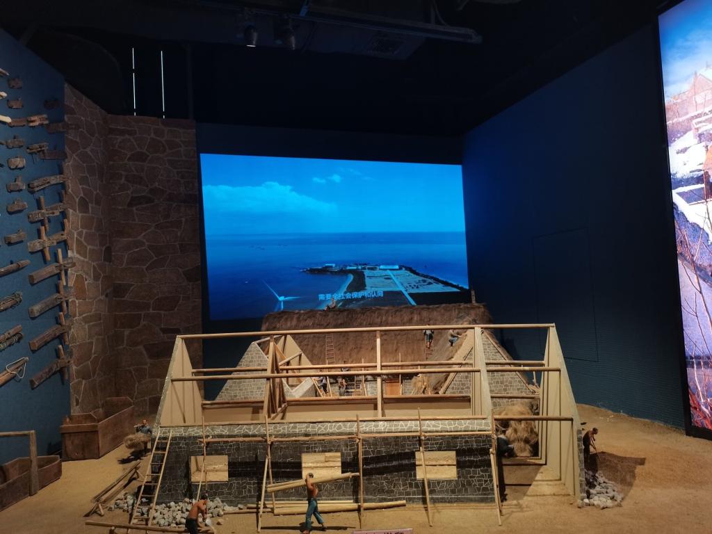 实践队员仔细查看威海市文化馆展物。展厅展品丰富多样,包括海草房,威海古建筑,造船工艺,威海当地特色吃食,如海参晾晒工艺、海鲜鲅鱼饺子等。参观期间,实践队采访了馆内游客和非遗传承人,进一步加深对威海市非遗的认识,详细了解广大游客和市民对非物质文化遗产的理解与认识。有游客说道:“来参观文化馆,像海草房这样的建筑,就像回到了小时候一样。这里的建筑都是一比一还原,真实性很强,也感谢能有机会在现在能看到这样的景象。”