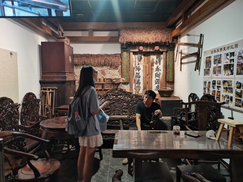 关于非遗的传承与保护,古家具修复传承人指出:“像古家具修复这样的非物质文化遗产,可以通过居委会,引导老人和热爱木艺的人浸入到文化氛围里;居委会提供场地,传承人定期辅导,传播文化。而且可以进行商品化,带来经济效益。”由此可知,非物质文化遗产的传承方式多种多样,这也是该展览的重要意义所在。
