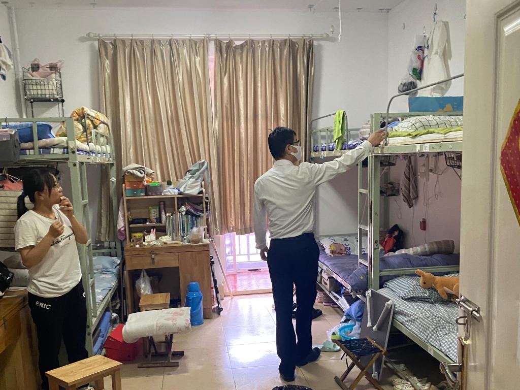 关注的重点。此次大排查主要针对宿舍卫生问题和安全用电问题,采用不发通知、直插现场的工作方式对文泽园、四季花园、东升园学生宿舍进行拉网式违章电器全面检查。2018级辅导员宁晓文,详细查看每个宿舍情况,现场指导学生排除潜在安全风险,增强学生安全保护能力。2019级辅导员李梅和陈鑫先后来到男生和女生宿舍,逐一查看宿舍卫生和用电安全状况,提醒各宿舍开窗通风;为同学们加油打气,希望同学们快速回归学校生活状态,投入到新的学习生活中。2020级辅导员田青,对各宿舍用电安全情况进行详细检查,不时询问同学们有关日常宿舍生活中需要掌握的基本用电知识,针对发现的问题给予耐心的指导,从细微处消除安全隐患。他嘱咐同学们要妥善处理好舍友关系,养成健康文明的学习生活习惯,以良好的精神状态迎接新学期的到来。综合各园区宿舍排查发现,绝大部分寝室都能保证安全用电、合规用电。