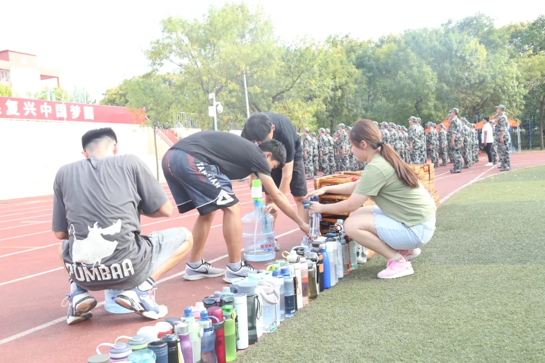 团委学生会的成员也时刻坚守在军训第一线。从值班执勤到蹲点服务,从医卫保健到秩序维护,他们都进行了明确分工,以确保新生军训顺利进行。从清晨训练场上第一声哨响,到夜幕灯光下的最后一句“解散”,他们全程陪伴着新生,见证他们的付出。在新生出现状况时,他们快速反应,安抚情绪,倒水喂药……