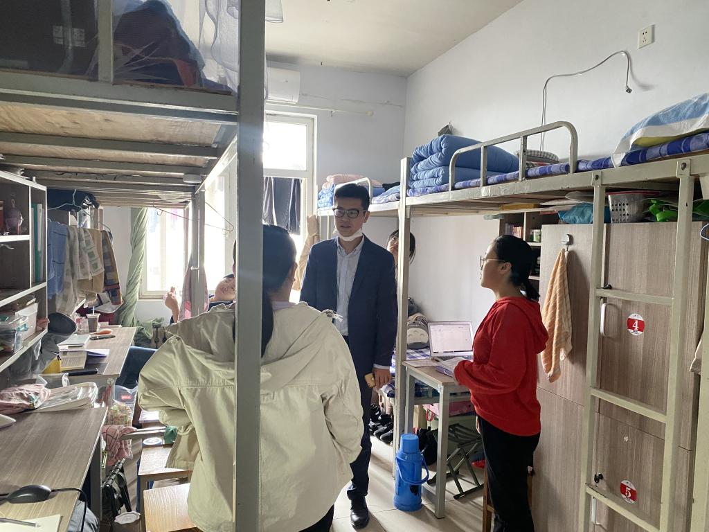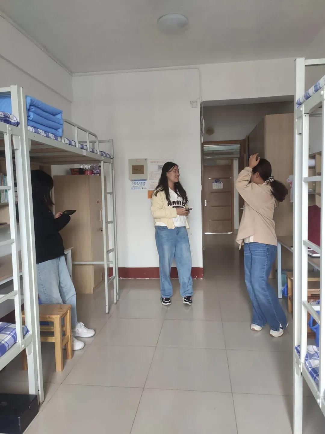 党委副书记刘伟、2018级辅导员田青、2019级辅导员李梅、2020级辅导员张乃宁以及2021级辅导员董青走进宿舍,开展宿舍安全卫生检查工作。