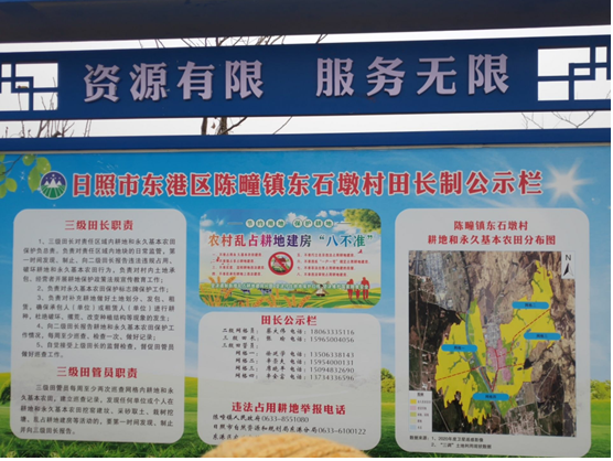 下午前往东港区陈疃镇北鲍疃村和东(中)石墩村参观高标准农田建设项目区,实地感受土质田坎与干砌石田坎的区别,观摩了大口井、提水泵站、输水管道、蓄水池等构成的农田水利工程体系,滴灌管道的布设方式,农村道路的布局和建设现状,同时了解了永久基本农田保护田长制的落实与安排。