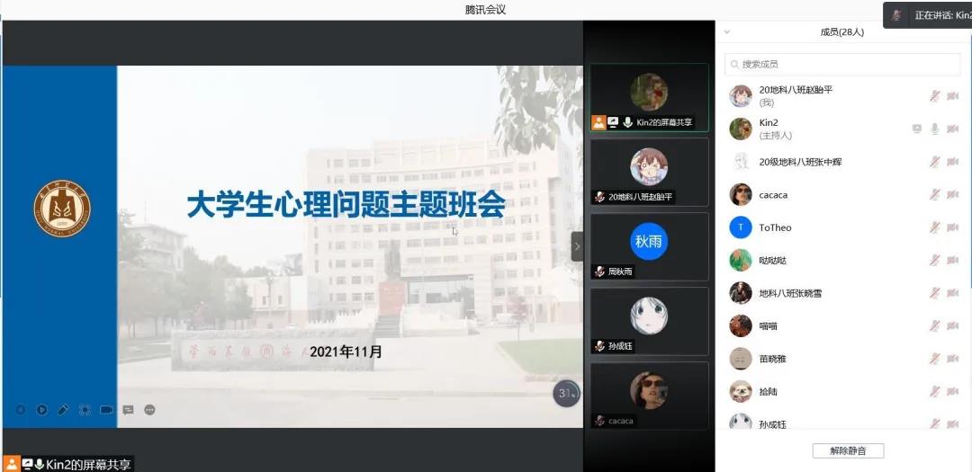 班会上,各班班长通过PPT解说、播放相关案例等展开心理健康主题教育。班会内容涵盖学生常见心理问题、心理健康判断标准以及常见心理问题的解决方法。集中学习和了解了应对挫折的方法,增强同学们的信心,培养同学们健康的心理素质。班会上,同学们踊跃发言,对如何形成良好、积极向上的心态提出不同见解,就具体做法方面提出切实可行的建议。最后,各年级辅导员从学习生活实际出发,讲述了同学们在生活、学习中可能遇见的心理健康问题,就心理健康方面给予同学们具体指导,强调个人心态及情绪的调整,并引导同学们正确调节情绪,谨遵“谦恭自律、尊重他人”的交往原则,塑造积极健康的心理品质。