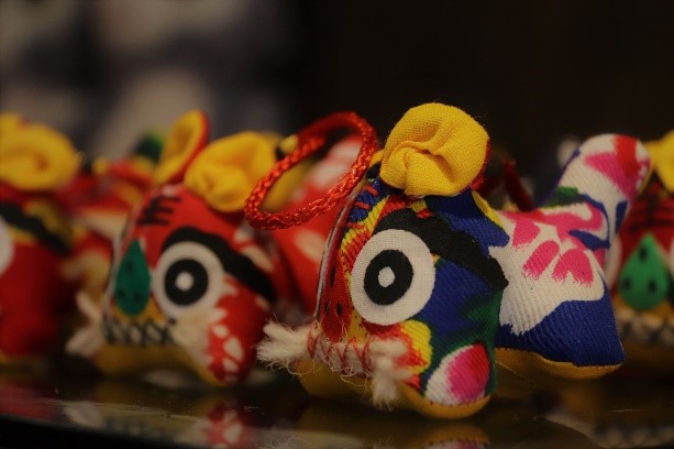但队员们在观察的过程中,发现工坊内鞋垫展品并不多,徐老师解释道随着近些年鞋垫的应用性下降,心灵手巧的手工艺人便创新性的将割花技艺应用于其他物品上。千缕丝线被银白色的绣花针编织成了象征强壮的布老虎、代表平安喜乐的平安锁、寓意马到成功的小马摆件等,成本会大大降低,但消费市场较大,愿意购买的人越来越多。如今,割花不但成为五莲传统文化的标志性符号,而且通过开发割花这一手工艺品,带动了一大批农村妇女从事割花制作,既增加了农民收入,助力脱贫致富,又带动了邻里和睦,促进了乡村振兴。队员们惊叹于割绣手工艺品做工精细、作品精美,纷纷挑选购买喜爱的工艺品。
