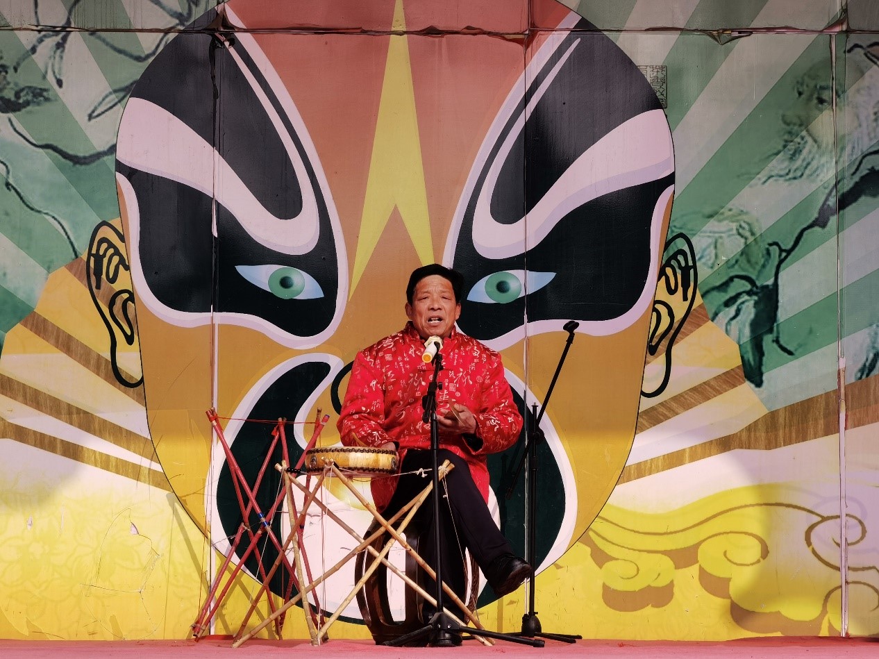 图为老师傅在表演鲁南大鼓