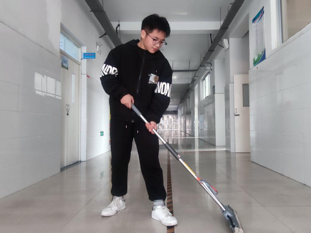 红船筑梦实践队成员在帮助团支部打扫卫生