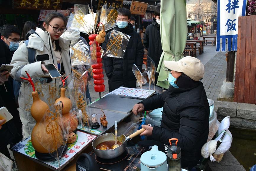 为进一步了解非物质文化遗产“糖画”的制作和传承,1月8日非遗探查小队来到日照市东夷小镇,拜访“糖画”手艺人郑师傅。