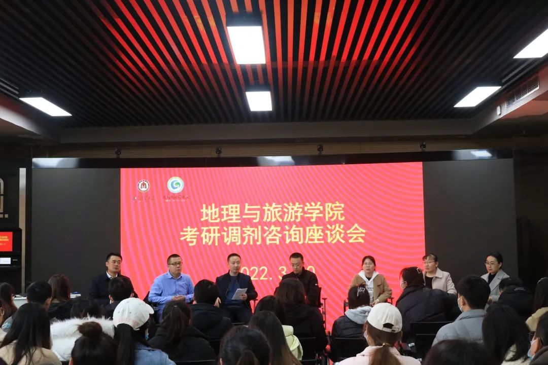 党委副书记刘伟主持会议,副院长于伟、地理信息科学系主任郭浩、旅游管理系主任张瑜、人文地理教研室赵林、自然地理教研室李瑞平、土地管理教研室孙丕苓出席座谈会,部分2018级考研学子参加会议。