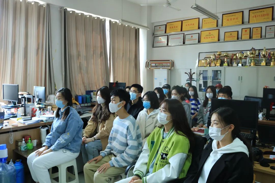 组织全体学生观看同上一堂“冰雪”思政大课,学生代表于S208观看学习。