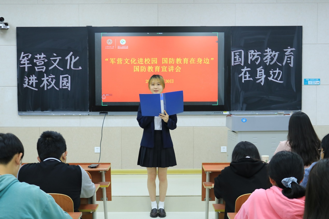 宣讲会上,季秀香分享了她在中国人民解放军某部队两年的从军经历。她讲述了自己参军入伍的原因、参军入伍后生活的变化、在部队生活的收获、参军入伍对现在的影响等几个方面。她强调,参军入伍不仅可以全面认识党,还能收获真挚的战友情,同时也能磨练自己的意志。随后,在自由提问环节中现场同学积极向季秀香提问,咨询参军入伍的相关事宜。