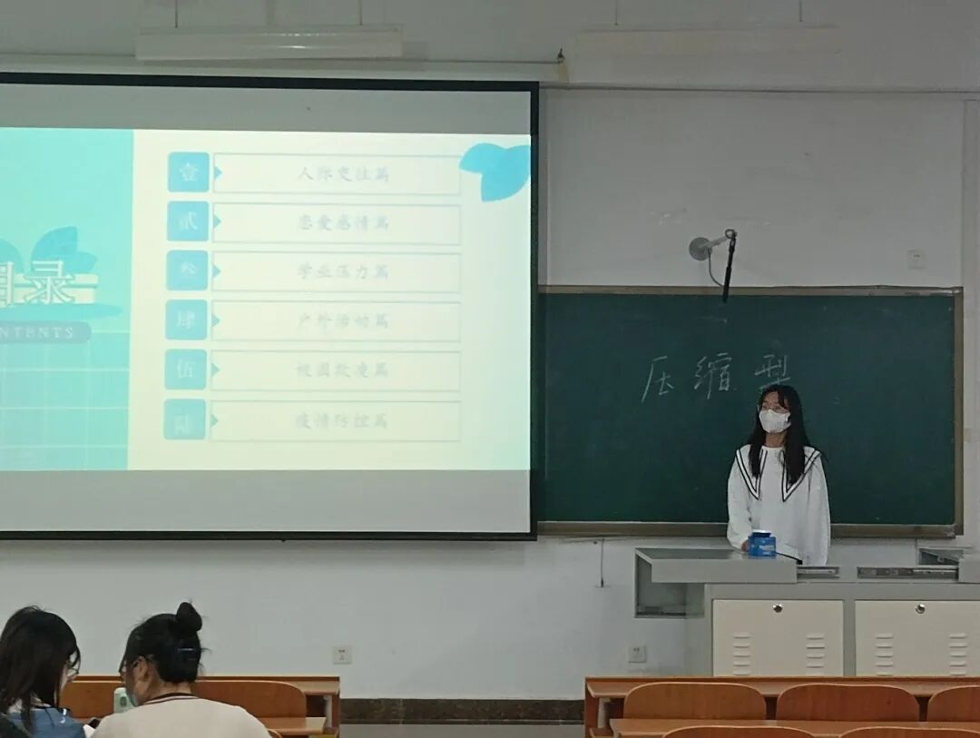 本次心理健康教育主题班会从人际交往、恋爱感情、学业压力、户外运动、校园欺凌、疫情防控六个方面对同学们进行指导教育。集中学习和了解了应对挫折的方法,增强同学们的信心,培养同学们健康的心理素质。班会上,同学们踊跃发言,对如何形成良好、积极向上的心态提出不同见解,就具体做法方面提出切实可行的建议。最后,各位班长从学习生活实际出发,讲述了同学们在生活、学习中可能遇见的心理健康问题,就心理健康方面给予同学们具体指导,强调个人心态及情绪的调整,并引导同学们正确调节情绪,谨遵“谦恭自律、尊重他人”的交往原则,塑造积极健康的心理品质。