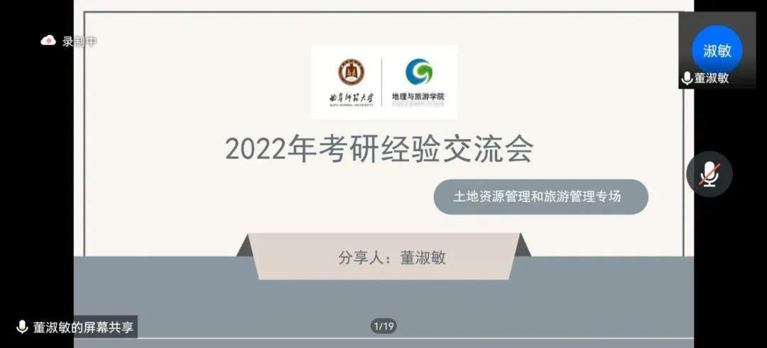 举办开蒙讲坛之土地资源管理和旅游管理专场考研经验交流会。本次交流会采用线上会议形式,考研优秀代表谭斐、王京哲、张湘、孙贝贝、董淑敏、刘雪莲主讲,各级学生积极参加。