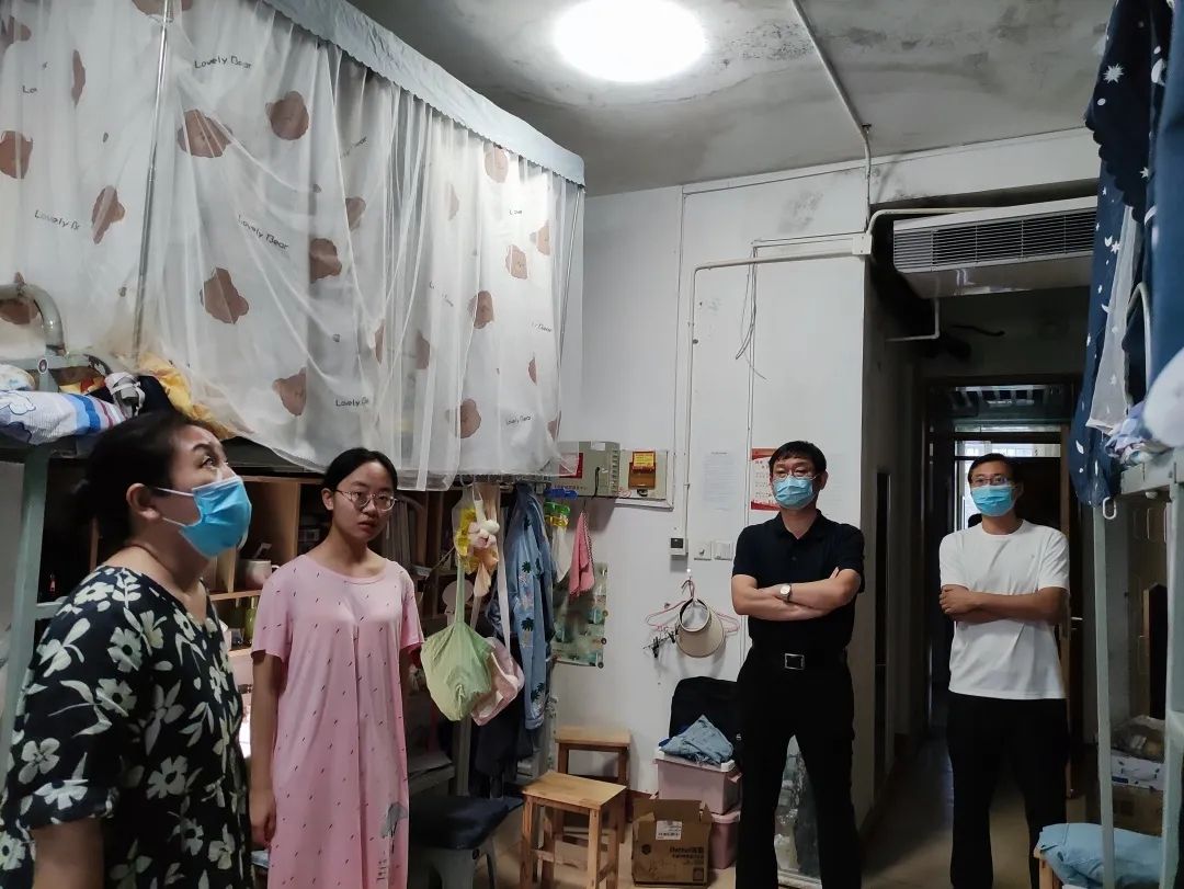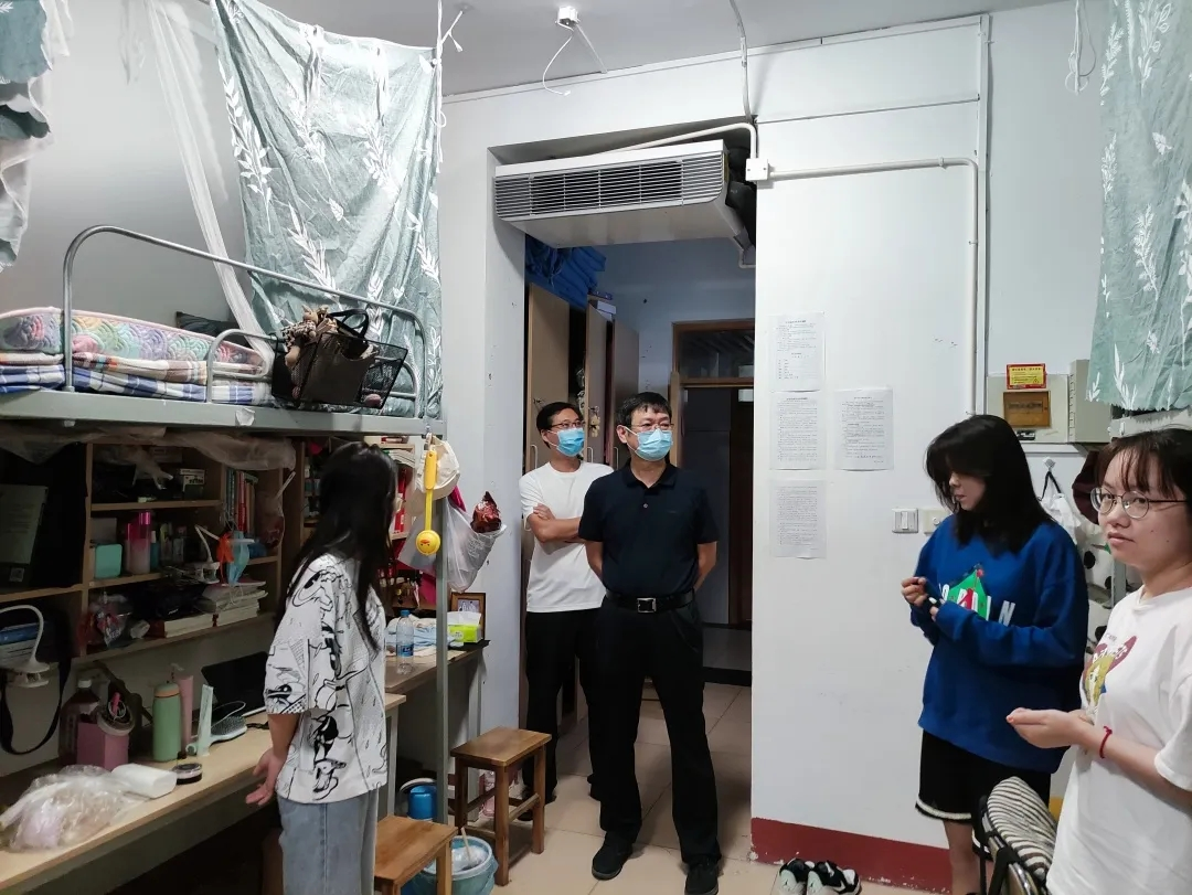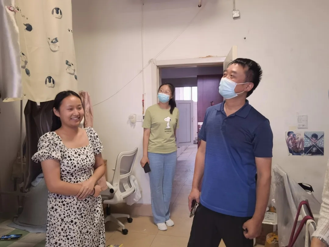 在宿舍内,老师们详细查看了同学们的宿舍状况,用水用电、消防安全等;核对同学们返校核酸检测情况,叮嘱大家一定要积极配合疫情防控;询问大家返校后遇到的困难以及为新学期所做的准备,就同学们对新学期的期待与同学们深入讨论。老师们强调,新的学期,大家应为自己立好目标,做好准备,努力学习的同时保持宿舍整洁。老师们表示,宿舍是大家共同的家,也是赋予大家安全感的地方,每个人都有责任去爱护它、保护它。良好的宿舍生活环境使人心情愉悦,有利于在校大学生的生活及心理健康。老师们鼓励大家新学期要积极主动,认真学习。老师们要求,当前本土新冠病例激增,疫情防控处于紧要关头,作为新时代的大学生要有责任心,尽自己所能为社会做出贡献,做到出门戴口罩,勤洗手、不扎堆、不聚集,严格遵守学校各项防疫规定,坚持非必要不外出,坚持生活区-教学区“两点一线”;要加强锻炼,对疫情防控保持乐观,保持身心健康。