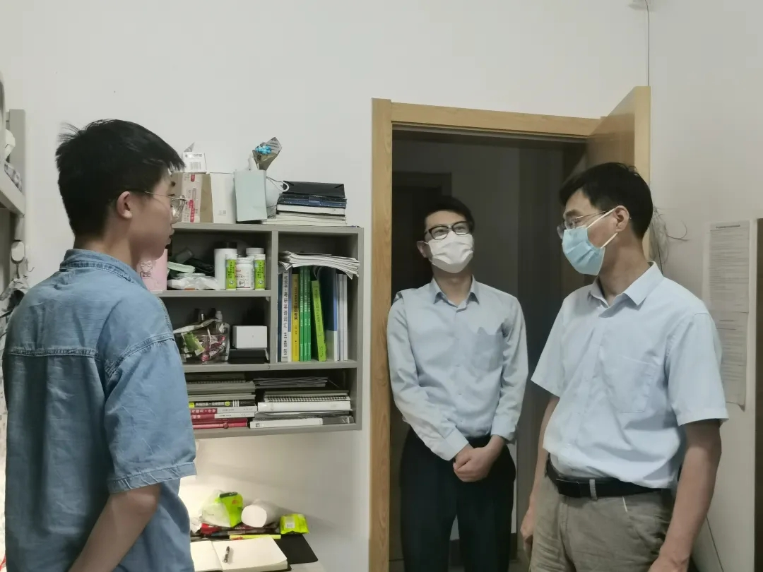 党委书记苏占兵、院长张全景、副书记刘伟、副院长吴军、于伟、院长助理李宝富、团委书记李梅、辅导员田青、张乃宁、研究生辅导员赵岩、研究生秘书朱丽,走进学生宿舍看望返校学生。