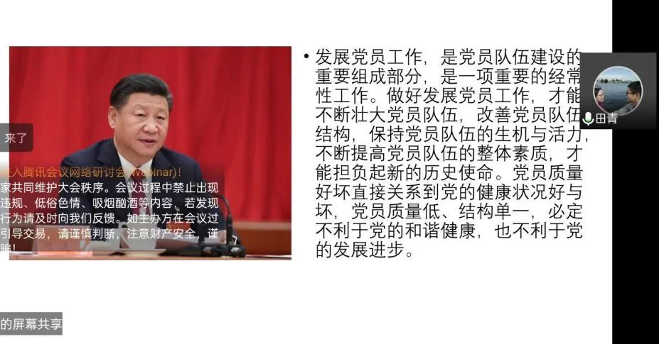本科生党支部书记田青主讲。