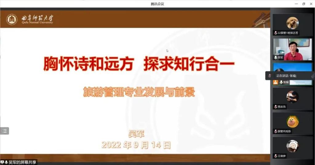 旅游管理专业认知和培养方案解读会上,吴军从学习旅游管理的作用、旅游产业前景、旅游人才现状、就业优势、从业优势、专业概述、专业人才培养目标、专业素质、应对挑战、历史沿革、特色优势、人才引领、师资力量和实践基地建设等方面,详细介绍了旅游管理专业状况。张瑜结合往届毕业生案例,从毕业要求、学制学分、实践教学、教学计划安排等,详细解读了人才培养方案。