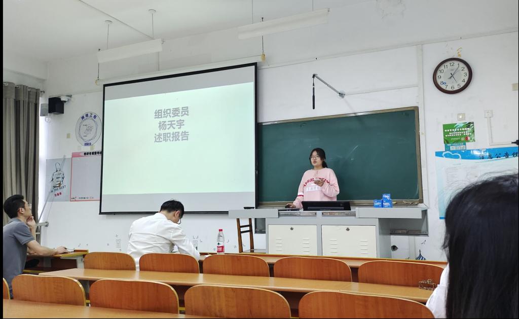 述职班会上,田青再次提醒全体同学,要务必重视学业成绩,遵守课堂纪律,课上认真学习,课后及时复习,积极参与科创竞赛,为日后的保研或者考研打下坚实基础。他提到,各位班委要树立集体意识,将班级工作合理分工,团结协作,定期交流探讨,主动寻找问题并及时、恰当地解决,更要树立长期目标,做好本职工作的同时在学习、科创等方面发挥好带头作用。