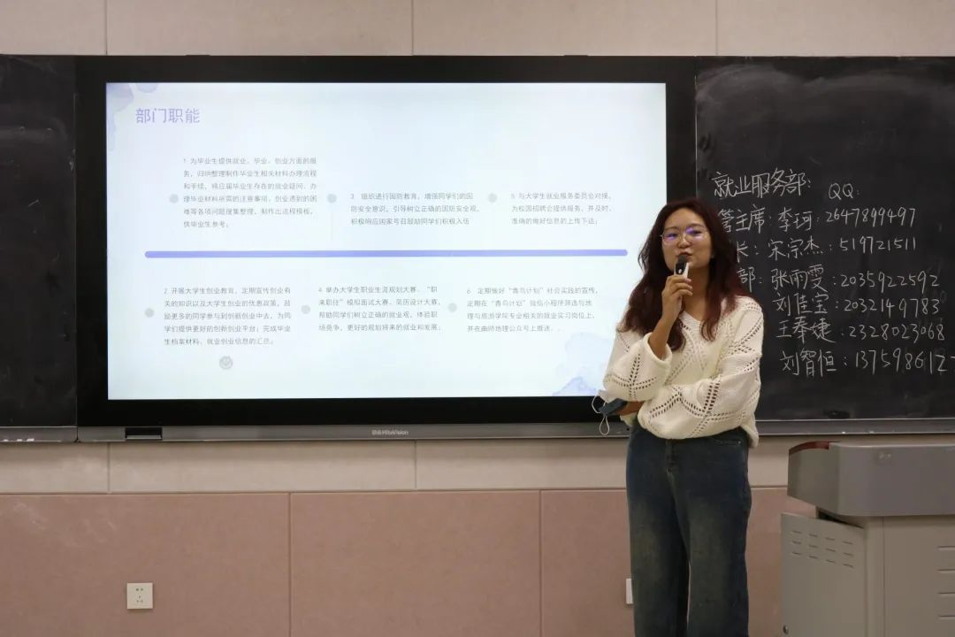 团委学生会共19个部门,各具特色,各司其职,相互配合,高效完成各类学生工作和各项活动。宣讲中,各部门围绕部门工作、部门结构、部门成员、部门优点与竞选要求等内容展开详细介绍,从同学们的兴趣点出发,结合自身工作经历,展示风采,亮出特色,激发同学们加入团委学生会的热情,为女足直播