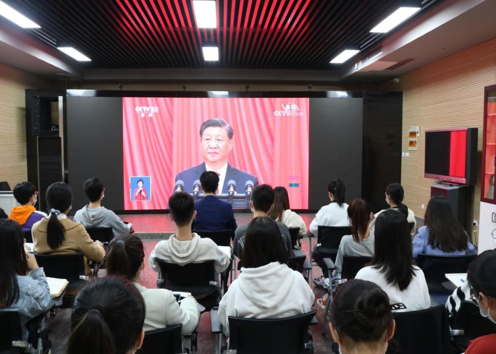 本科生党支部组织集中观看开幕式直播。支部全体成员集体观看。