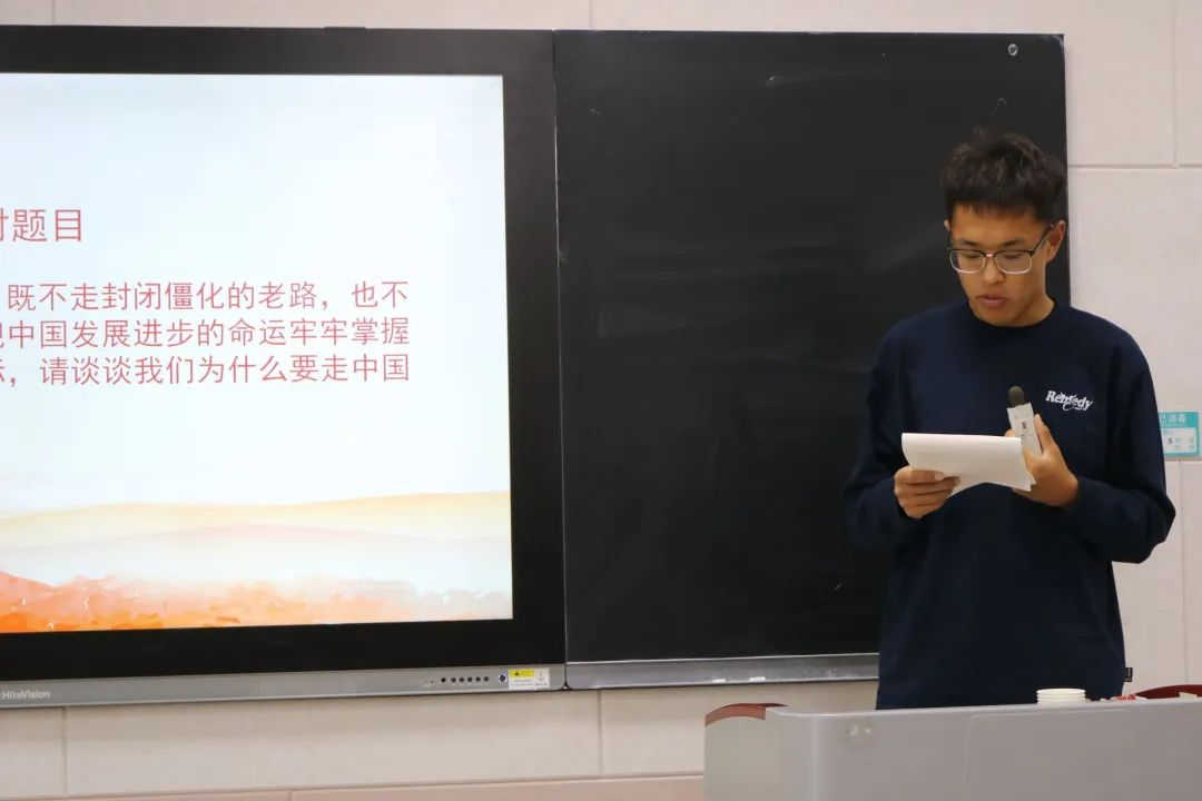 研讨第三部分,思考为什么要走中国特色社会主义道路。入党积极分子纷纷表示:理论上,中国特色社会主义是中国几代共产党人将马克思主义中国化的成果,是正确的、先进的,是我们必须坚持的;实践上,中国特色社会主义有着宏伟的历史成就,用事实说明了我们的精神文化与物质文化相匹配,是符合规律的;历史和未来上,中国特色社会主义是理论逻辑和历史逻辑的辩证统一,是根植于中国大地、反映人民意愿、适合中国发展进步要求的科学社会主义。