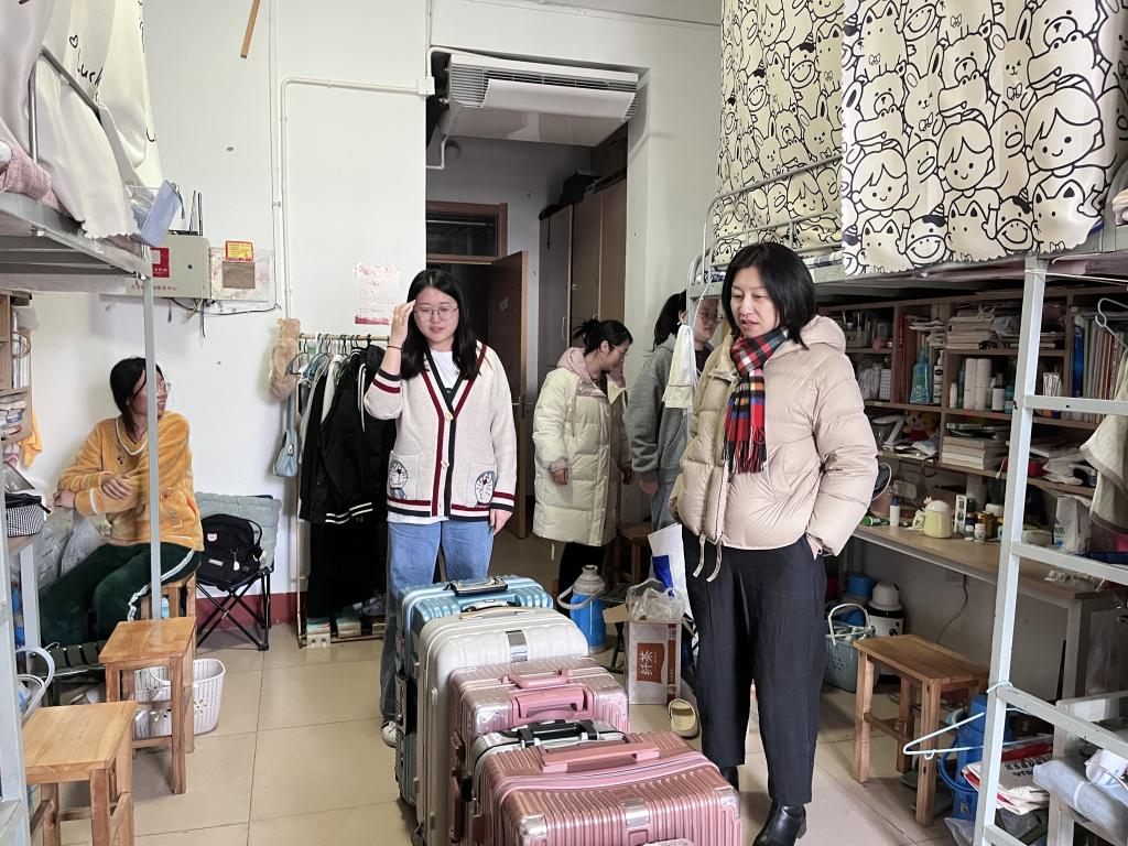 党委副书记刘伟及各年级辅导员李梅、张乃宁、田青、陈鑫,分别走进学生宿舍,开展“开学第一访”。