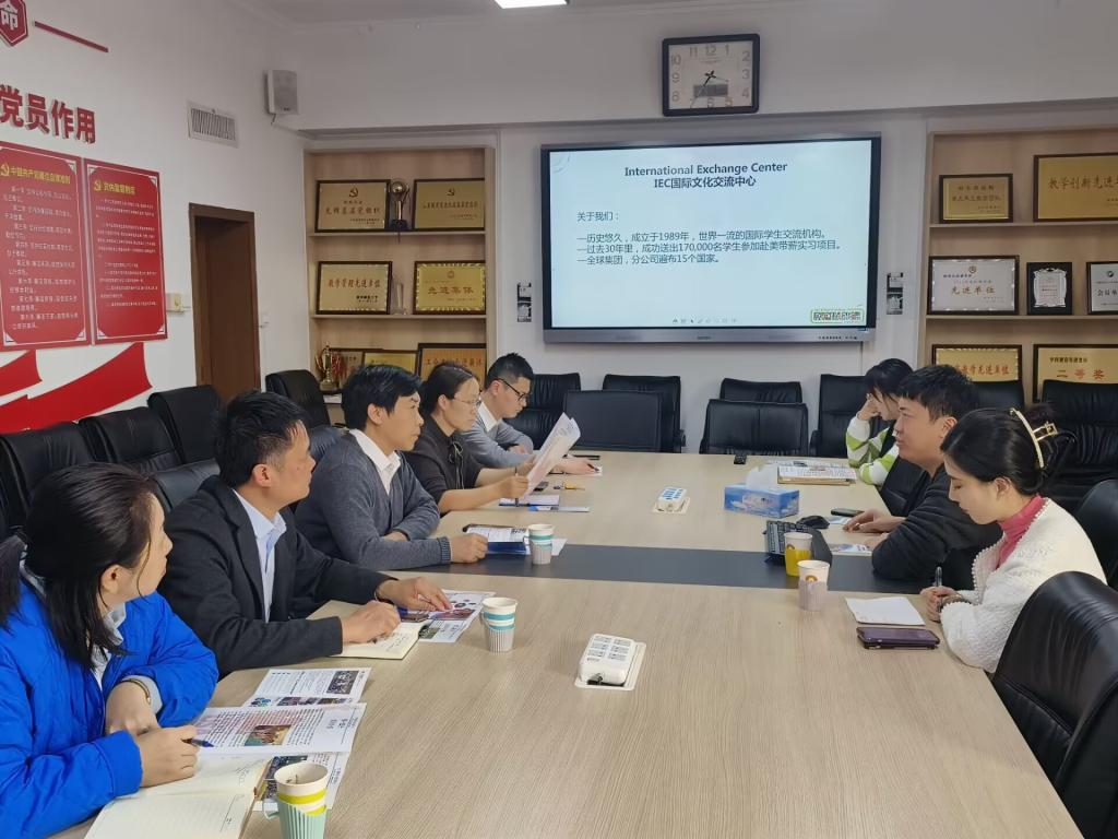 对接会上,叶德舜详细介绍了IEC国际文化交流中心情况、国际交流项目和带薪实习项目情况、项目合作情况以及参加项目学生发展状况。双方就旅游管理专业学生境外实习实训,2023届毕业生人才市场需求信息分享、校企合作岗位拓展等方面进行了深入对接。