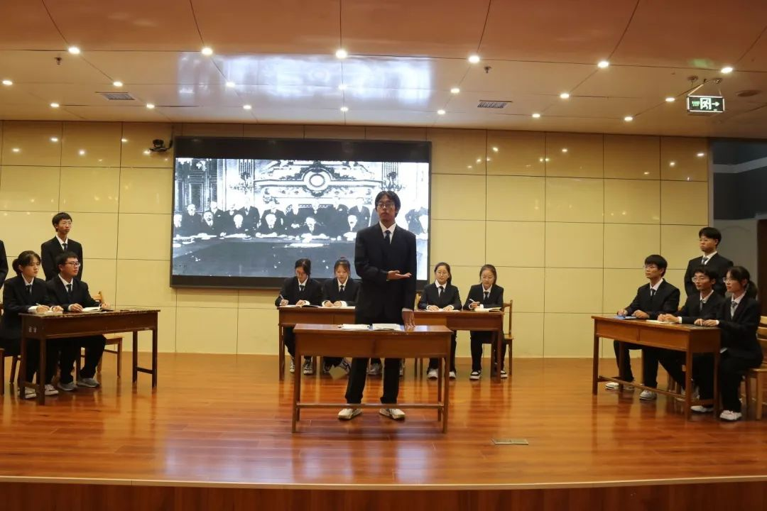 各团支部高度重视此次比赛,仔细查阅历史资料,精心打磨剧本,利用课余时间反复练习,力求将革命故事原汁原味还原。舞台上,同学们用1919巴黎和谈失败后“外争国权内惩国贼”、“誓死力争还我青岛”的呐喊传递青春热血,以《歌唱二小放牛郎》的动人旋律讲述着少年儿童面对革命的大智大勇,用壮烈囚歌描绘出叶挺的英勇无畏;相约建党的南陈北李演绎着共产党才能救中国的坚定信念,受尽严刑拷打仍坚贞不屈的赵一曼诠释着对共产主义的热爱,藏于戈壁隐姓埋名的邓稼先展现出舍小家为大国的无私奉献;为中华之崛起而读书的呼声响彻云霄,誓死守护共产党宣言的呐喊遗响百年。同学们将一个个感人至深的故事搬上舞台,在他们的演绎中,红色经典缓缓流传,红色血脉悄然赓续。