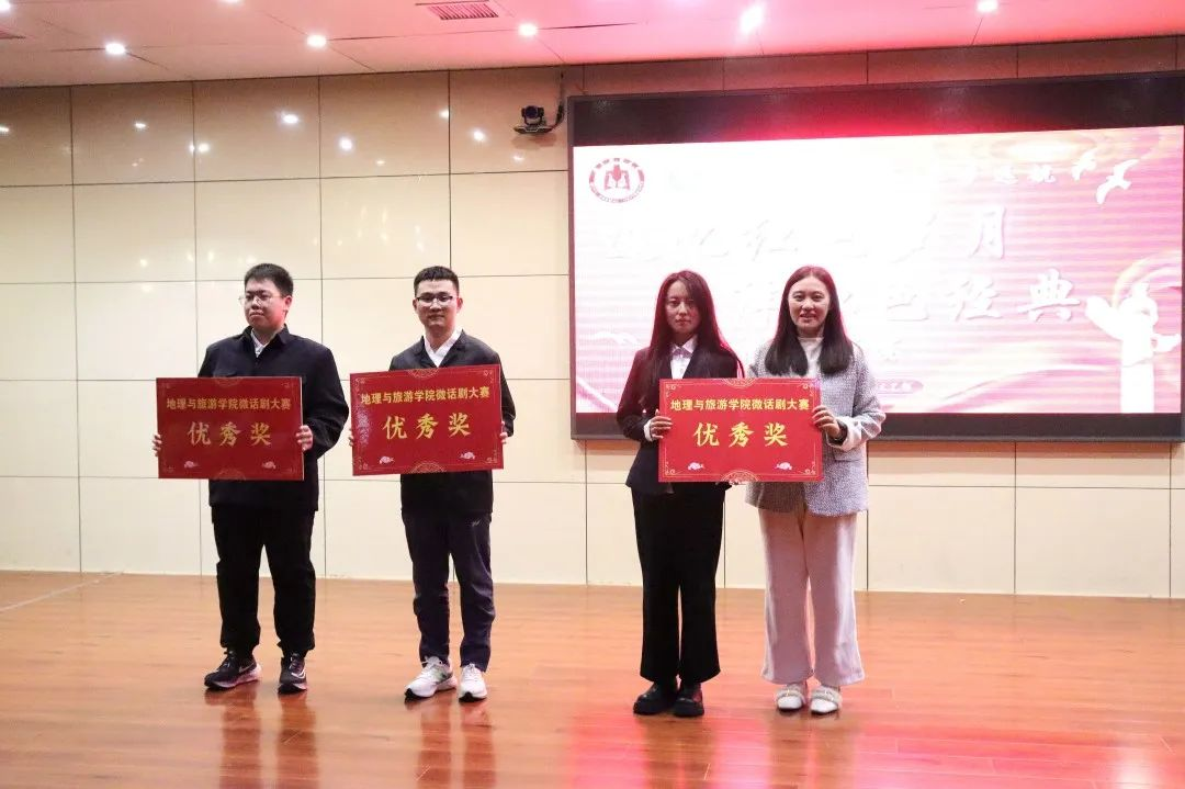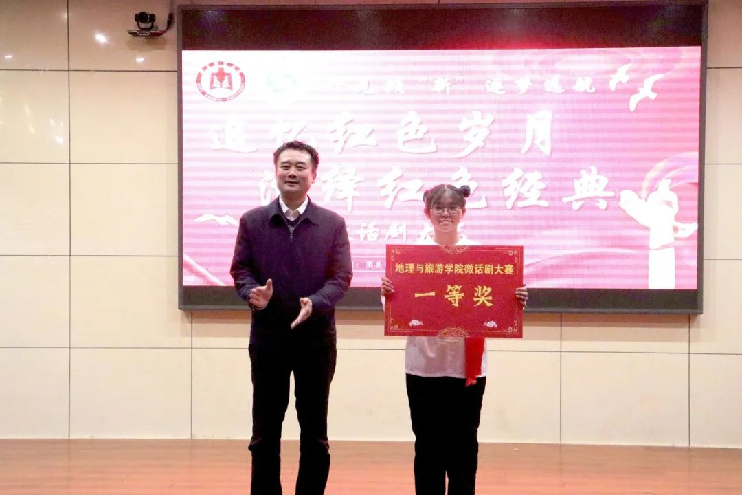 经过评委老师和学生会主席团公平公正的打分,评选出此次比赛的一、二、三等奖及优秀奖。最后,刘伟点评,同学们精心准备、用心演绎,真正感悟到来自红色岁月的心灵洗礼,青年人当有青年一代的理想担当,青年一代朝气蓬勃,当不忘初心担负使命,以不负时代之势创造灿烂人生,助力新时代中华民族伟大复兴中国梦的实现。最后李梅老师做总结发言,此次话剧大赛不仅增进了同学间和班级间的交流,更提升了团支部凝聚力,同时同学们从红色经典中汲取智慧力量,面向未来、再立新功,贡献青春力量、展现青春担当,在漫漫人生路上砥砺前行,在薪火相传中继往开来。