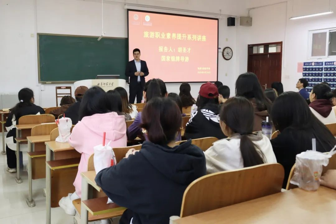 于S406举办旅游职业素养提升系列讲座暨2024年导游服务技能大赛颁奖仪式。讲座邀请到国家银牌导游、日照职业技术女足直播