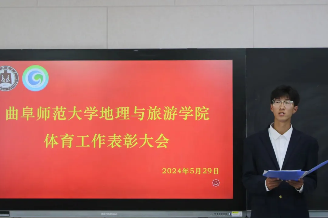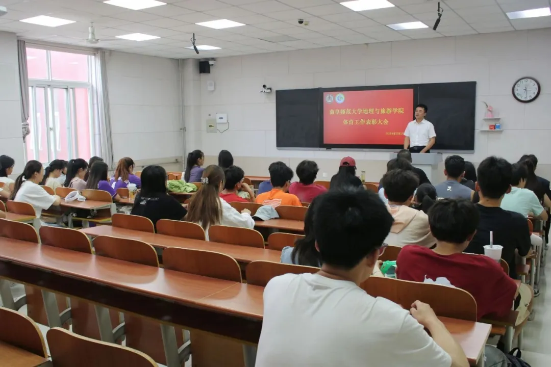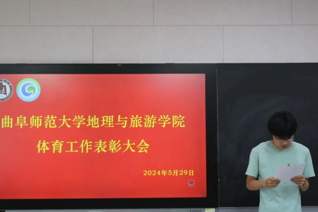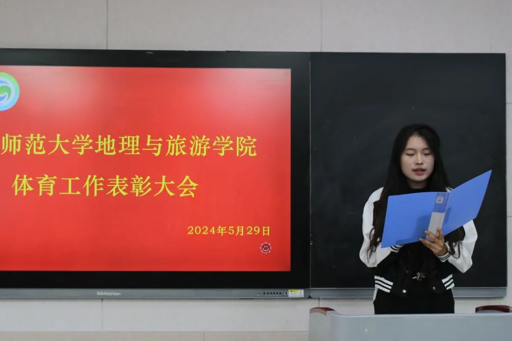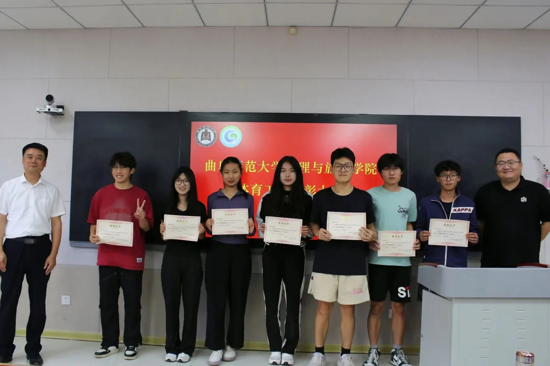 的大力支持和老师的辛勤付出表示感谢。贾志浩作为球队代表,以他所在的地理男排队为例,分享球队的建设及管理经验。他表示,建立起一个积极向上的队伍,需要球队所有成员明确目标,同心协力,坚持训练,超越自我。郭兴哲宣读表彰名单,鼓励受到表彰的同学珍惜荣誉、再创佳绩。刘伟、陈鑫分别为获得“体育之星”“体育先进个人”“体育先进集体”等奖项的先进集体和个人颁发荣誉证书并合影留念。最后,李欣瑞总结近期体育工作,肯定近期工作佳绩,提出不足和问题,并对未来工作作出规划。
