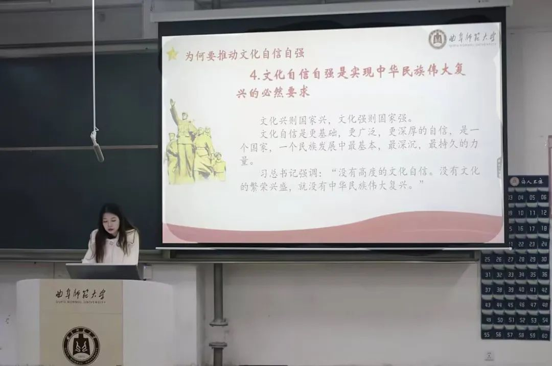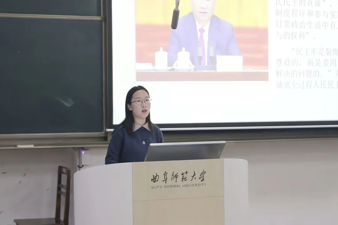 会议伊始,李雯雯通过引用习近平总书记在党的二十大报告中的讲话,“全面建设社会主义现代化国家,必须坚持中国特色社会主义文化发展道路,增强文化自信。”来向团员们阐释推进文化自信自强的重要性。文化自信自强是实现中华民族伟大复兴的强大精神力量,建设社会主义文化强国与坚定文化自信密不可分。李雯雯提到,文化自信自强的推进与大学生息息相关。身为青年一代的大学生,必须坚定理想信念、将理论与实践相结合,积极推动文化自信。随后,李艳竹以海南省白沙县县委政府听取民意的事件为例,为团员们讲解全过程人民民主的相关内容。她通过列举,体现出全过程人民民主在现代化建设中发挥的重大作用。同时,她强调,全过程人民民主在当代具有重要价值,鼓励同学们坚定不移地参与到推进全过程人民民主建设当中去。