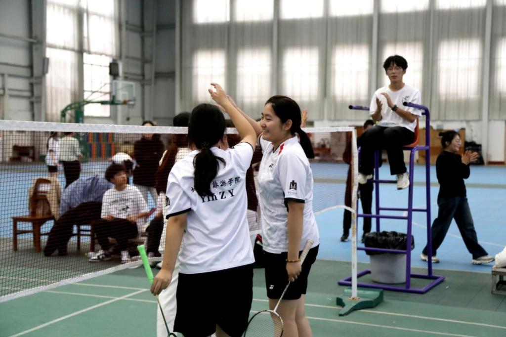 参赛师生按科室(专业)分组,分为16个小组进行小组循环赛,每场比赛由男双、女双以及混双三个项目组成。老师与同学在场上互相配合,奋力拼搏,展示着顽强拼搏的竞技精神与良好的的团队协作精神。赛场上,选手们每一个精准的扣杀都充满力量,每一次巧妙的接球都饱含技巧,给场下观众带来一场精彩的视觉盛宴。赢得场下观众的阵阵掌声和欢呼。