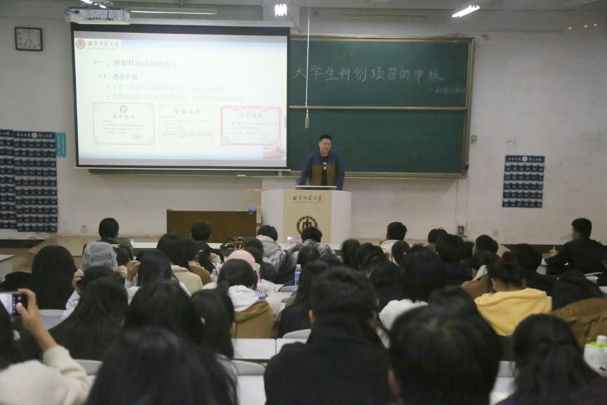 专业特性,推荐了一些重要的科技创新赛事,同学们听后受益匪浅。最后,张学波详细介绍了如何撰写大创项目书,强调了科研竞赛对开展科研创新的好处,他建议同学们可以平时多参加科研竞赛,增加科研相关知识,为科研创新做好充足准备。