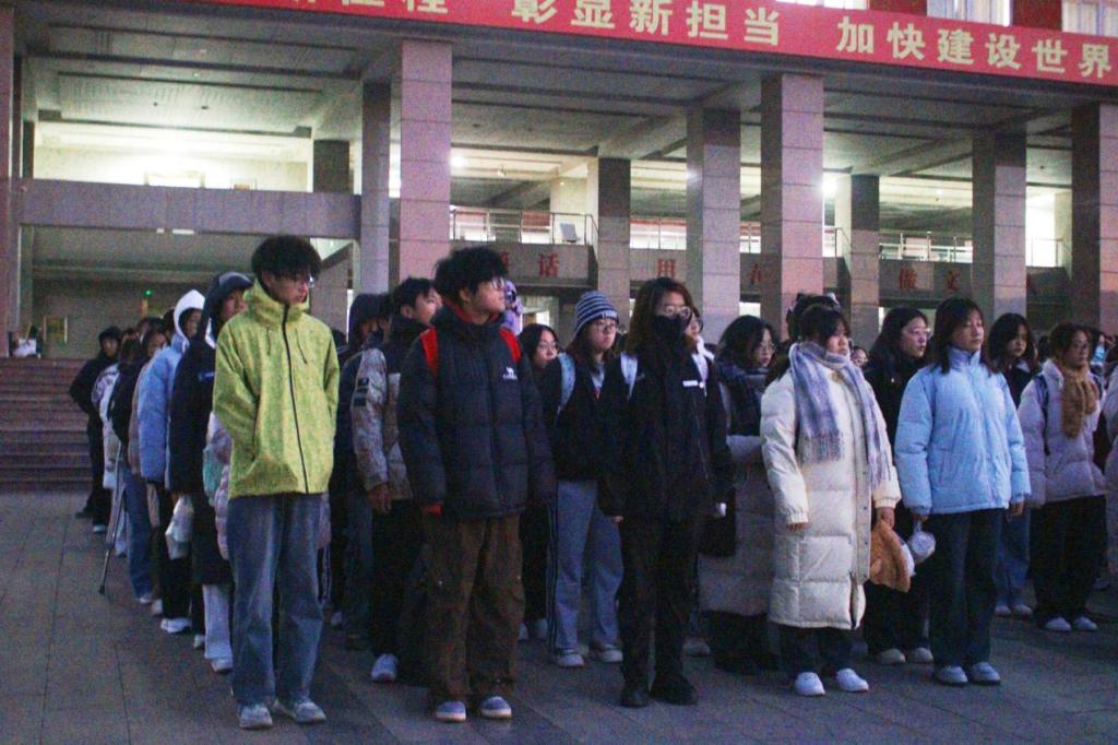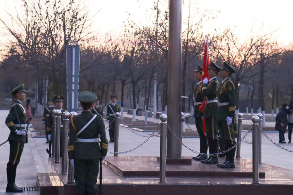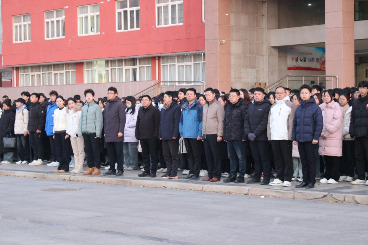 在主持人庄重的宣告下,升旗仪式正式拉开帷幕,国旗护卫队迈着整齐有力的步伐,护送国旗走向升旗台。伴随着庄严的国歌声,五星红旗缓缓升起,全体师生庄严肃立,行注目礼。随后,国旗护卫队队长李维松发言,他鼓励同学们要以“一二·九”运动中的革命先烈为榜样,将他们的爱国精神内化于心、外化于行,做新时代的见证者和参与者,积极为国家建设做贡献。同时,他向全体国旗护卫队队员发出号召,要求他们以更饱满的热情和更坚定的信念履行职责,让五星红旗永远飘扬于蓝天之下。最后,李维松公布第23届国旗护卫队队员名单,并带领全体队员在国旗下宣誓,进一步激发同学们内心的爱国热忱,加深同学们对爱国主义精神的深刻认知。
