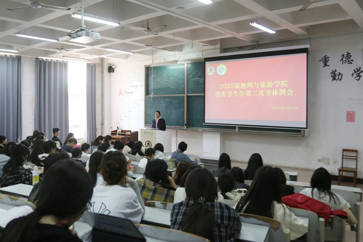 于E103召开2025届团委学生会第二次全体例会。团委书记李梅出席,院学生会主席尹新颖主持,2025届团委学生会全体成员参加。