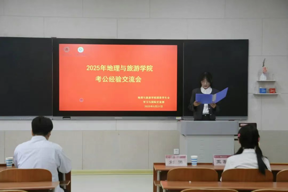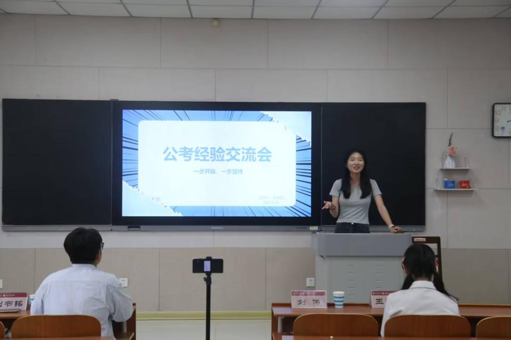 团委学生会学习与国际交流部承办,黄潇逸主持,2025届毕业生考公考编上岸的优秀毕业生代表王香月、刘书铭、付丰赫受邀进行经验分享,2022级、2023级学生积极参与。