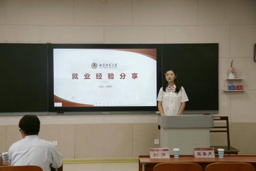 交流会上,王香月以中国工商银行秋招为例,着重强调明确目标岗位要求的重要性,详细介绍银行的招考条件,如部分银行网申阶段需有英语四六级证书,面试采用线上初选、线下终选模式等多种条件。刘书铭系统梳理公务员考试经验,从考试经历、信息获取、笔试备考、面试备考四个维度展开分享,建议同学们通过官方招生网站和专业APP明晰心仪岗位,强调在备考过程中,在高效学习的同时注重案例积累,总结出适合自己的答题模板,同时,她还提醒同学们面对激烈竞争,保持心态稳定的重要性。付丰赫通过板书绘制思维导图,直观对比国考、省考等不同考公类型的差异,通过自主讲解和听众互动相结合的方式,直观的分享省考面试技巧,提出可以从山东时政问题、面试着装与精神面貌等方面着手准备,建议同学们珍惜学校提供的锻炼平台,提升自己的表达能力。
