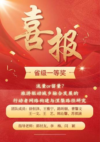 202566日,在临沂大学举办的第十九届建设银行“挑战杯”山东省大学生课外学术科技作品竞赛落下帷幕,澳洲女足直播 学子再创辉煌。《流量or留量?旅游驱动城乡融合发展的行动者网络构建与涅槃路径研究》项目由徐恒泽领队,在指导教师郭付友、李梅、闫颖的悉心指导下,队员们凭借出色的学术创新与实践能力,荣获省级一等奖,取得了近年来澳洲女足直播 在“挑战杯”系列赛事上的最好成绩,展现了女足直播 在学科建设与人才培养方面的卓越成果。