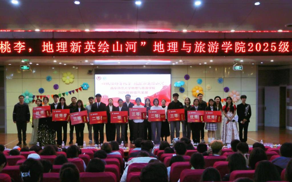专业元素,精心编排了一系列特色节目。经现场评委打分,地理科学三班荣获一等奖,地理科学二班、旅游管理一班荣获二等奖,地理科学一班、旅游管理二班、土地资源管理一班荣获三等奖,地理科学五班、土地资源管理二班、地理科学六班、地理科学四班荣获优秀奖。