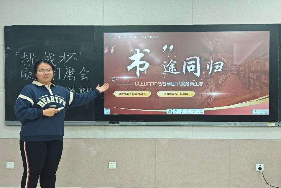 会上,各参赛项目依次进行模拟答辩展示,其中“‘书’途同归—智慧共享站”项目表现突出,该项目锚定全民阅读与文化强国建设政策方向,创新新打造“线上APP平台+线下智慧驿站” O2O闭环模式,依托人工智能技术实现阅读偏好智能推荐、图书精准调配及驿站智慧化管理;线上构建闲置图书分享、文创选购、直播微课融合的数字平台,线下在社区、高校、商圈布设复合型文化社交空间,提供配送、扫码取还书等灵活服务,并规划“青岛首发—山东半岛拓展—文旅城市联动”三步走推广战略,凭借公益价值与多元盈利模式并存的优势,破解图书流通不畅、获取成本较高的行业难题。项目展示完毕后,师生围绕展示内容交流探讨,指导老师针对部分项目创新性分析不足、技术落地细节模糊等问题提出专业优化建议。