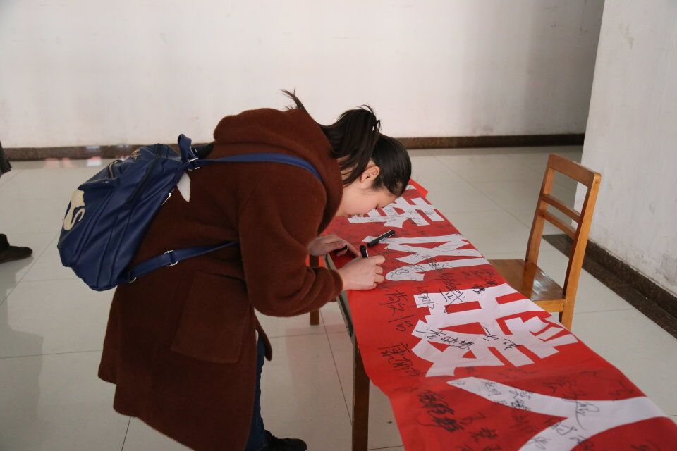 活动前期各班班长在班内发出学习雷锋精神签名倡议,并在女足直播