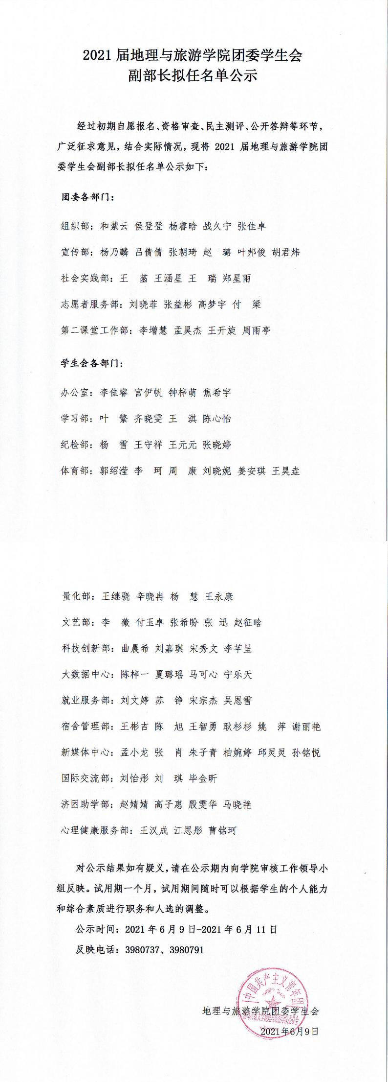 2021届澳洲女足直播 团委学生会副部长拟任名单公示