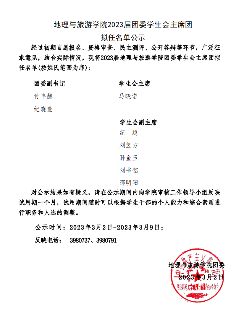 2023届澳洲女足直播 团委学生会部长拟任名单公示