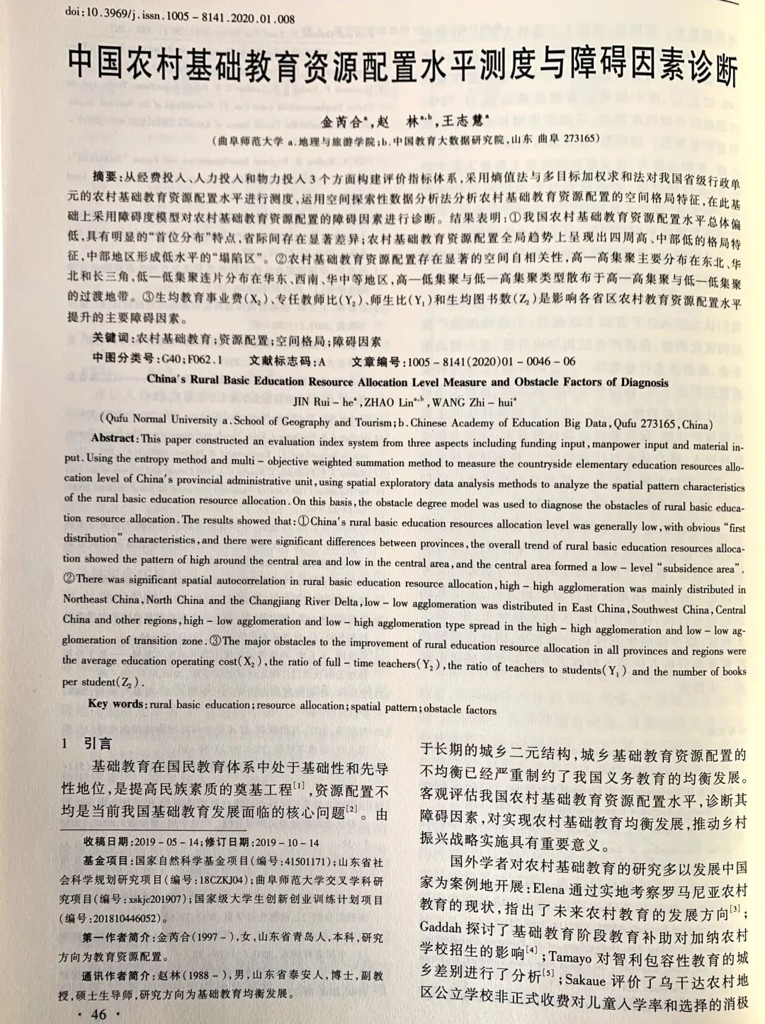 科研上,她思维敏捷,勤于专研,多次参与大学生创新创业活动,主持了国家级大学生创新创业训练项目《旅游背景下渔民生计适应模式与影响因素分析》的研究工作;目前以第一作者身份撰写的《中国农村基础教育资源配置水平测度与障碍因素诊断》论文发表于《资源开发与市场》;以第三作者身份参与的《山东省基础教育资源失配度时空演变与影响因素》论文发表于《资源开发与市场》、《中国省际绿色包容性效率的时空演变特征及其影响因素》发表于《应用生态学报》、《农村居民子女就学地选择意愿与影响因素——以山东省微山湖库区为例》论文发表于《西北人口》;在2018年10月参加“创青春创新创业大赛”以团队作品“斯特瑞生物科技有限公司”获得校级特等奖。