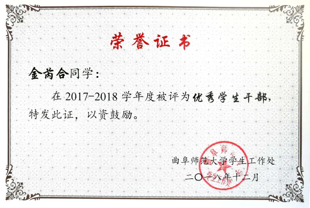 团委副书记、辅导员助理、2016级地理科学1班班长。勤于谋划,善于组织,出色完成各项工作。在大家的努力下,她所在的班级成为了学校的模范班级,获得了“优秀团支部”、“百优班级”的称号。在学生会中,她不断完善提高自己,在磨砺中学会如何做人做事,学会团结协作和求同存异,在此期间受到老师和同学们的一致认可,多次荣获“优秀学生干部”、“优秀团员”、“优秀团员标兵”等荣誉称号。
