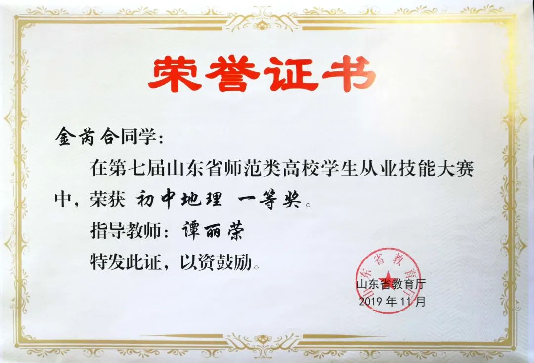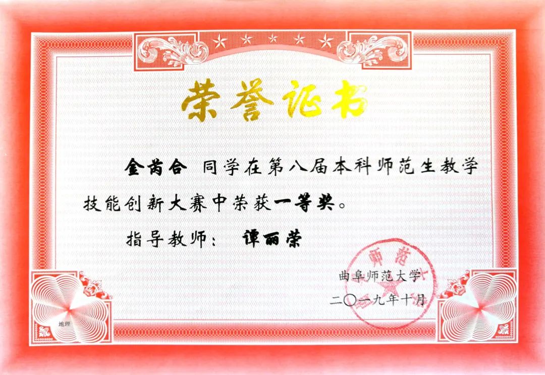 她是第七届山东省师范类高校学生从业技能大赛一等奖获得者,曲阜师范大学第八届本科生教学技能创新大赛一等奖获得者,国家级大学生创新创业训练项目的主持人;