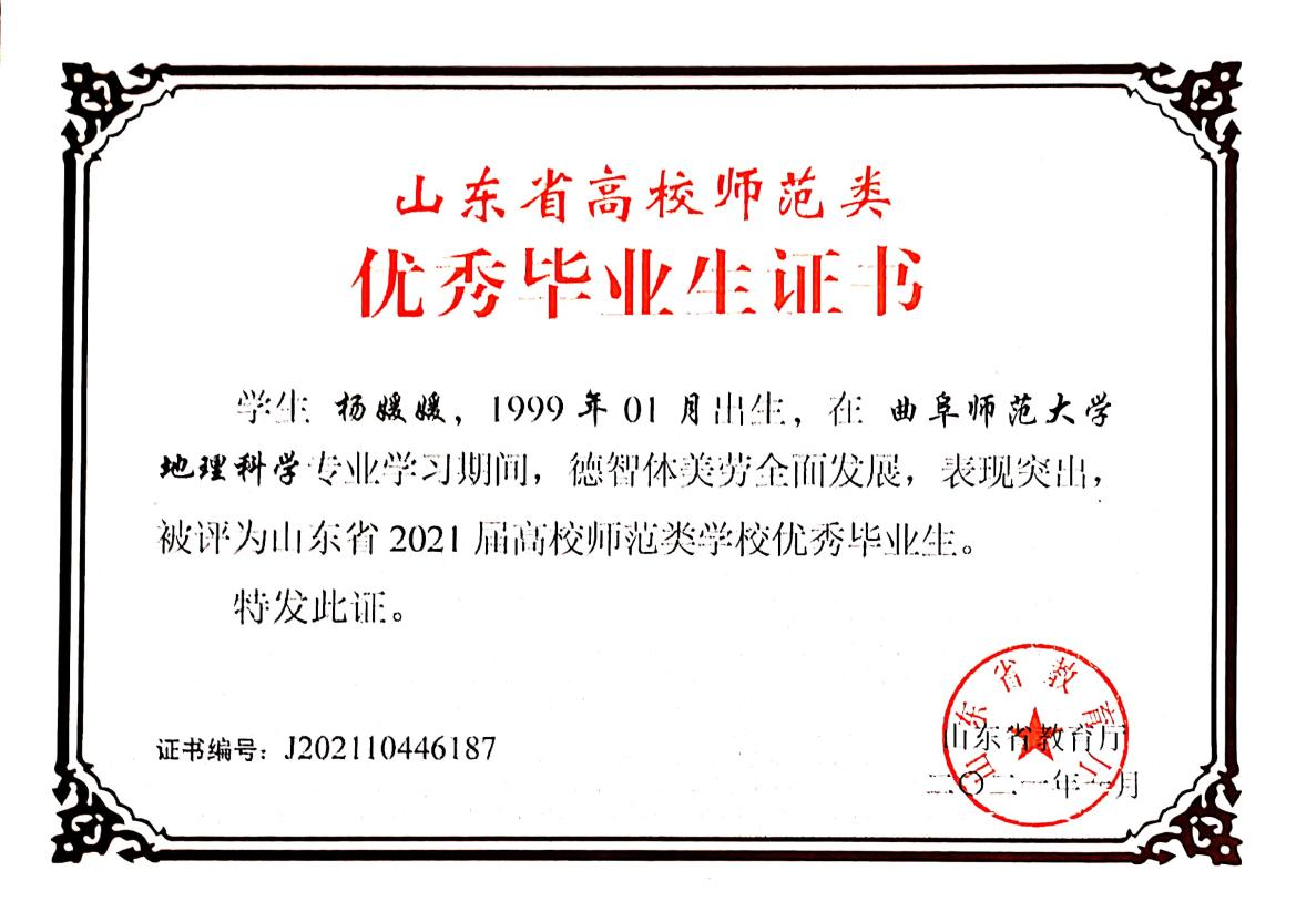 山东省高校师范类优秀毕业生,曲阜师范大学师范类优秀毕业生