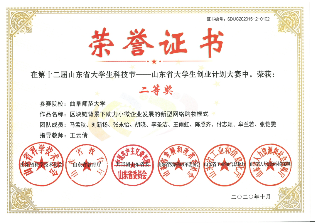 获奖奖项:第十一届山东省大学生创业计划大赛商业创意二等奖