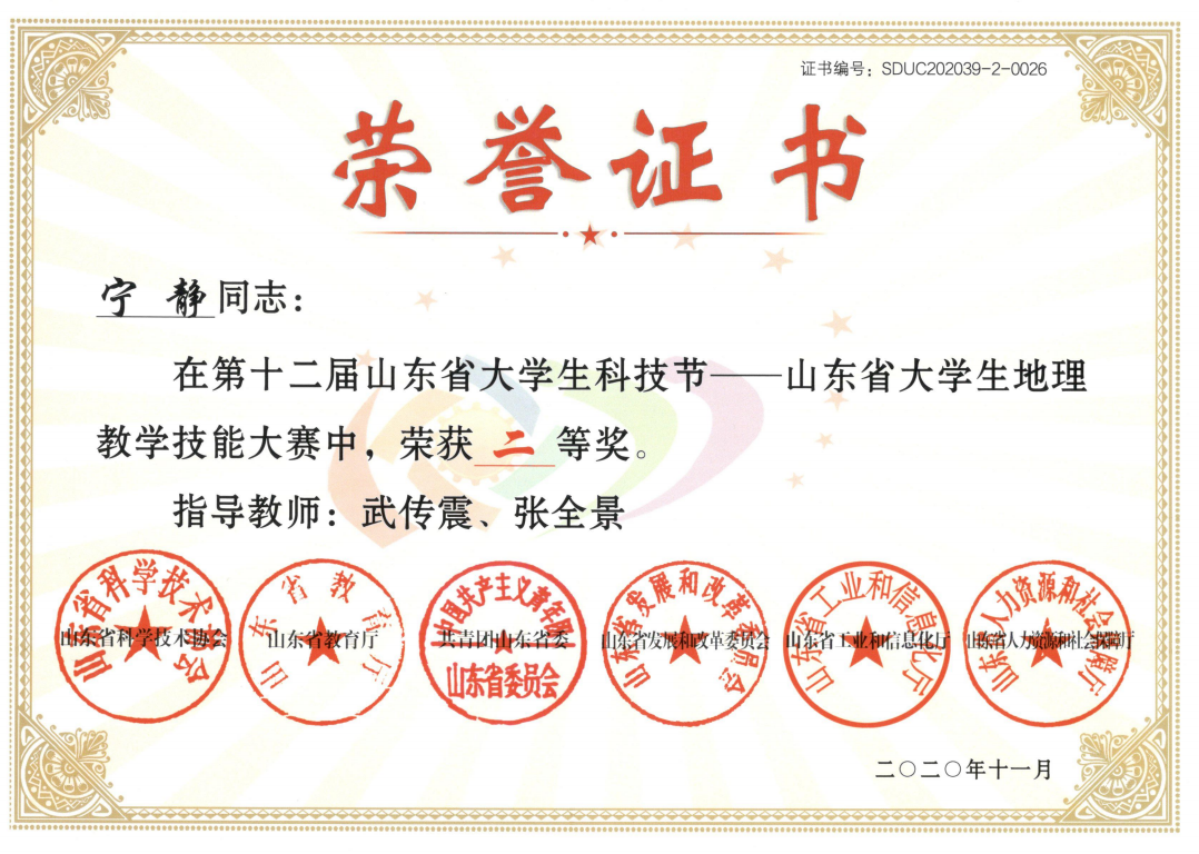 获奖情况:2020年山东省大学生地理教学技能大赛二等奖