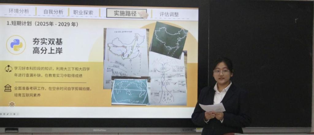 本次比赛分为成长赛道和就业赛道。参赛选手们通过生涯规划陈述、现场PPT展示等环节,全方位、多角度地展示各自的职业规划蓝图。他们结合个人专业特长、兴趣爱好和价值观,深入剖析自身的优势与不足,并在此基础上,确立了清晰的短期、中期和长期职业目标。选手们不仅关注知识的积累,更注重锻造实践能力、培养创新思维和提升综合素养。他们详细阐述课程学习、技能证书考取、实习实践、参与科研项目及社团活动等各项计划,展现出新时代青年立足当下、着眼未来的责任担当与蓬勃朝气